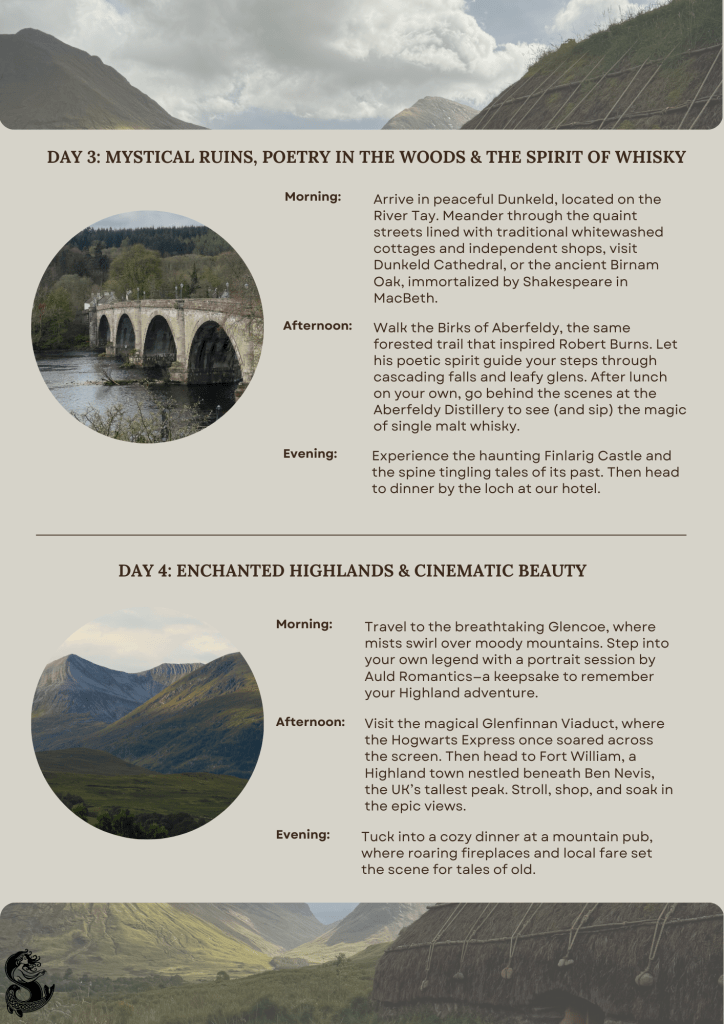 Step into the story of Scotland with a journey made for curious minds and kindred spirits. This tour invites you off the beaten path and into the heart of Fife’s fishing villages, Perthshire’s wooded hills, the wild majesty of the Highlands, and Edinburgh’s literary lanes. Along the way, you won’t just see historic castles—you’ll hear the echoes of the people who lived, wrote, ruled, and rebelled within their walls. Led by expert guides and joined by fellow travelers who love a good tale and an even better question, this is more than a sightseeing trip. It’s a conversation with Scotland—its poets and warriors, its thinkers and storytellers—woven together over shared meals, winding walks, and moments of quiet wonder.